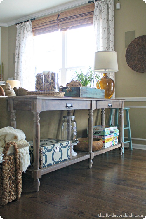 I kind of just put stuff on the sofa table when I got it in place, but I actually like it and don’t know if I’ll change much. The games are still there: